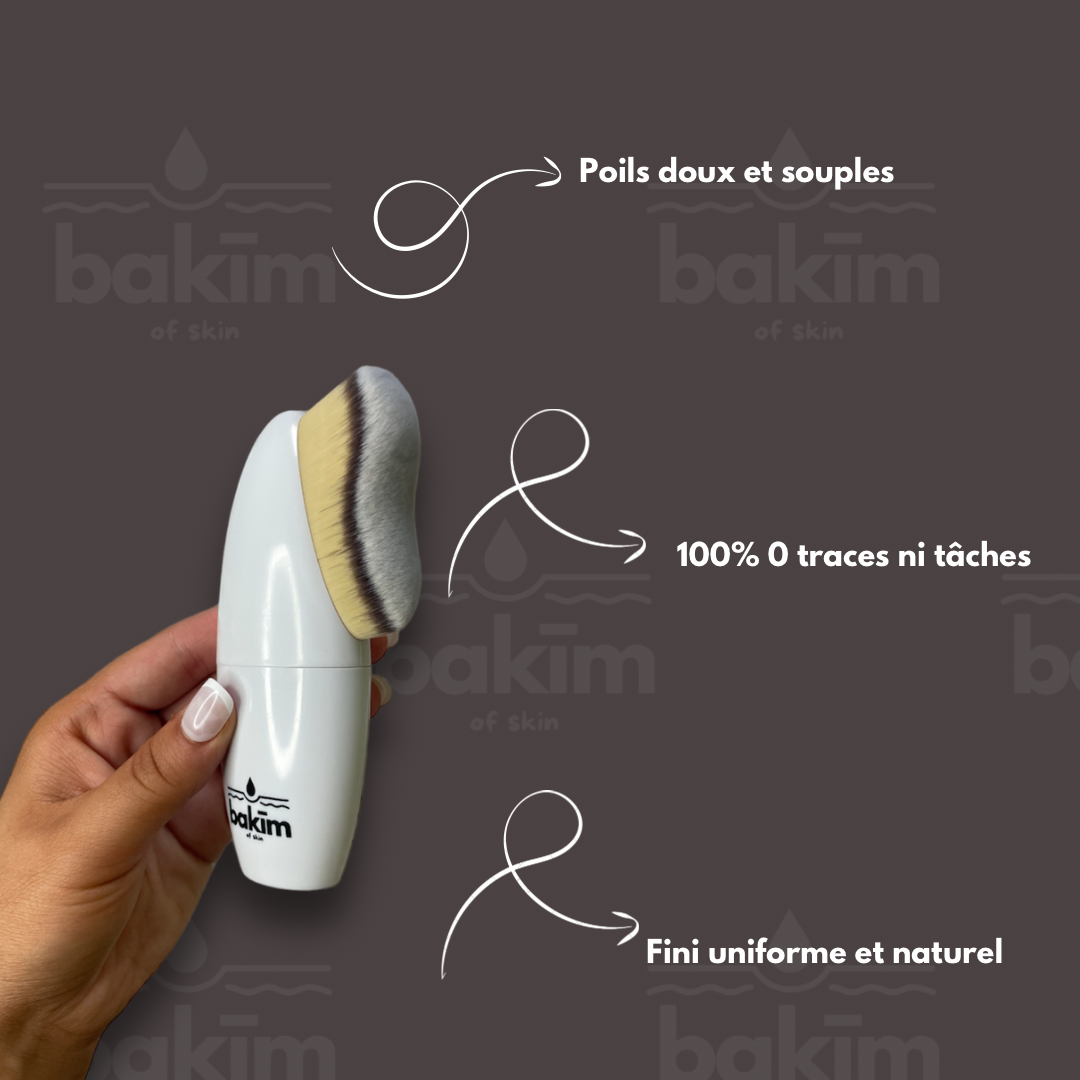 • Pulvérisez de la Mousse Autobronzante sur le Pinceau Kabuki.